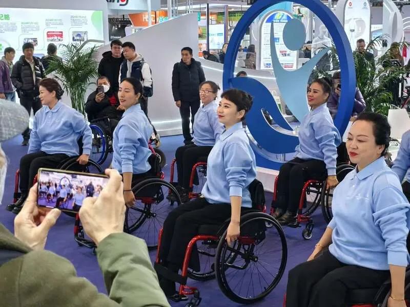 11月28日,2024中國國際福祉博覽會暨中國國際康復博覽會,北京心之源輪椅舞蹈隊正在表演。劉胤衡/攝