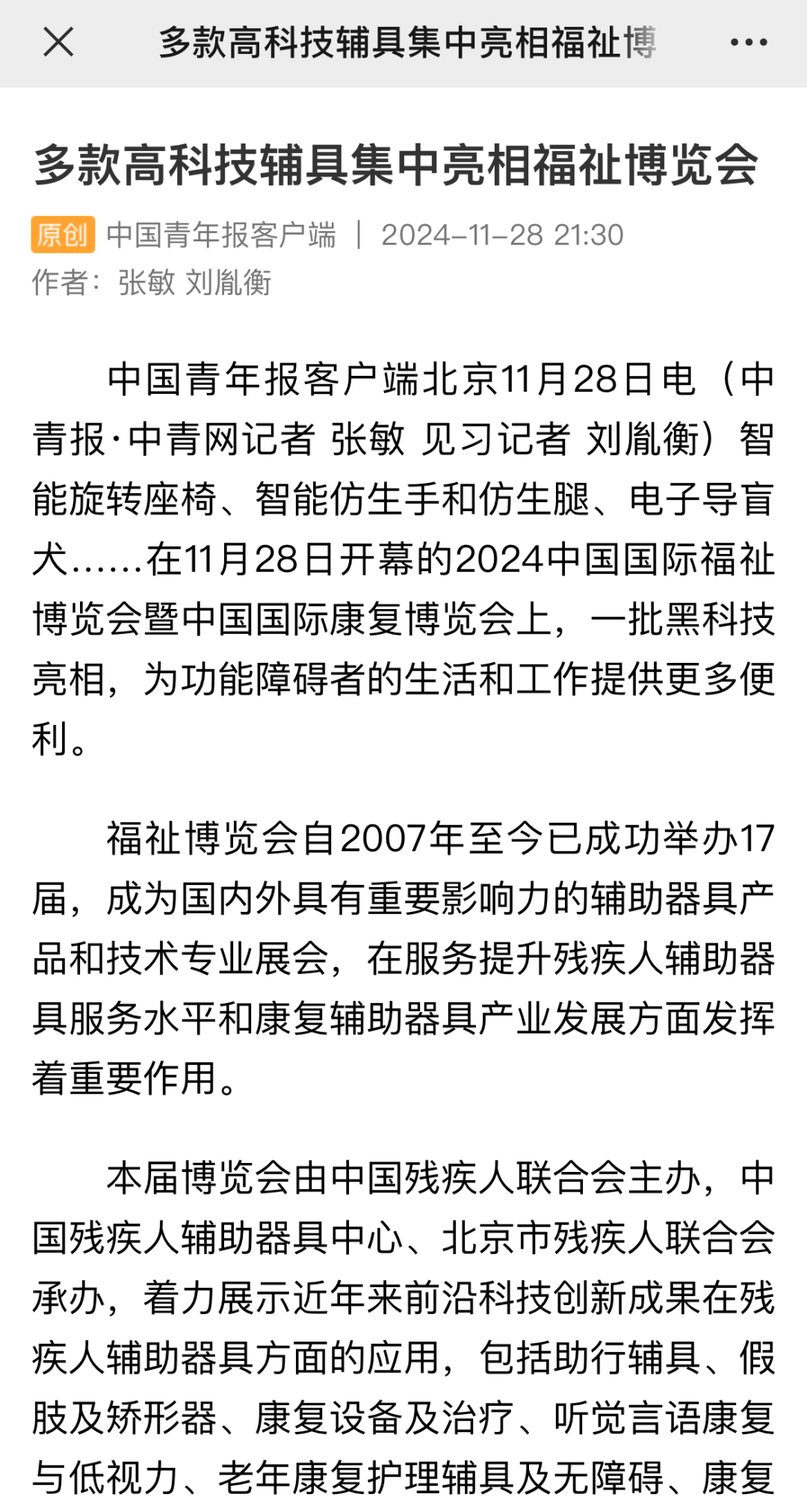福祉博覽會自2007年至今已成功舉辦17屆,成為國內(nèi)外具有重要影響力的輔助器具產(chǎn)品和技術(shù)專業(yè)展會,在服務提升殘疾人輔助器具服務水平和康復輔助器具產(chǎn)業(yè)發(fā)展方面發(fā)揮著重要作用。