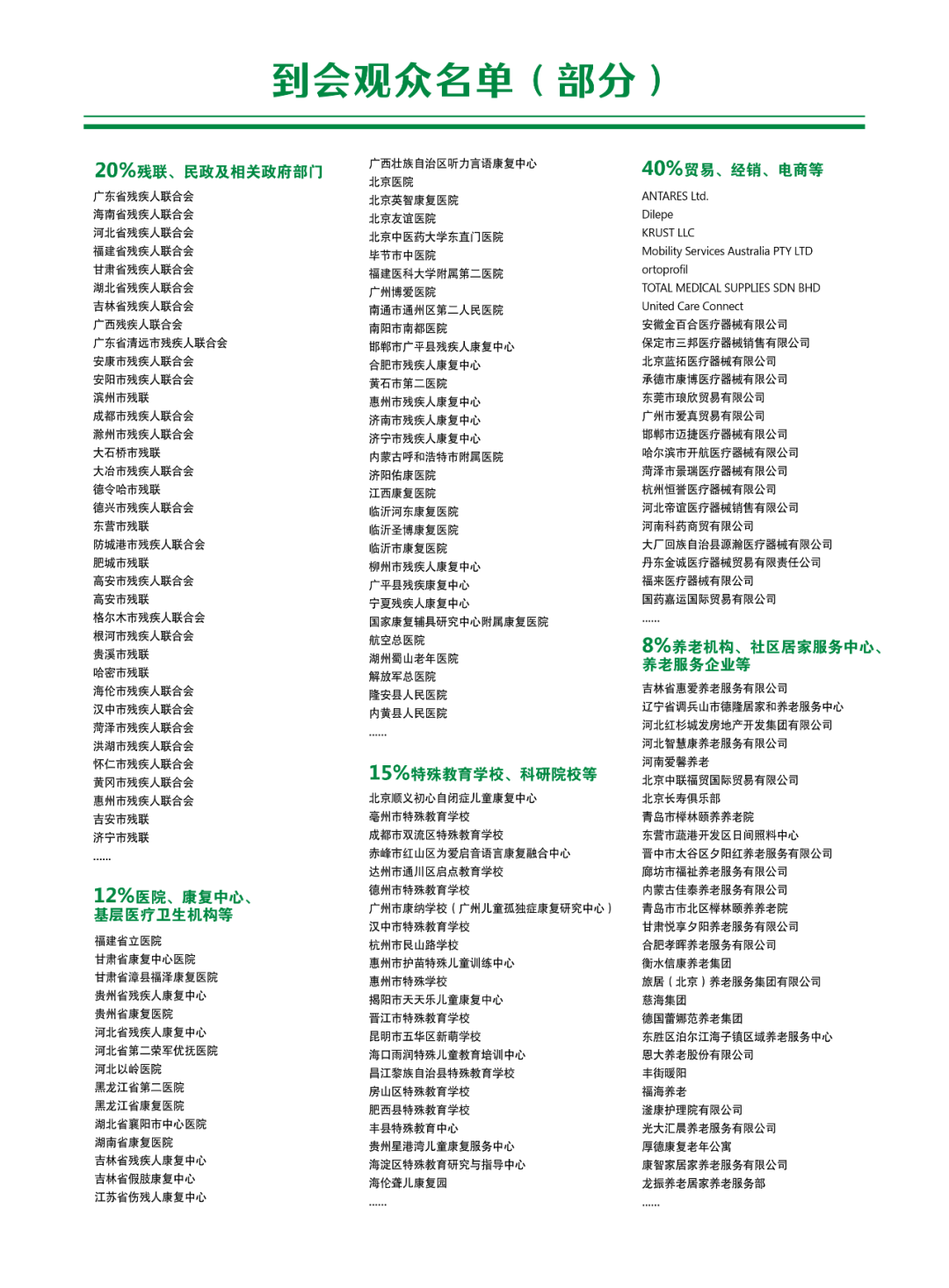 輪椅/助行輔具專區(qū) 聽覺言語康復展區(qū) 視力障礙康復專區(qū) 養(yǎng)老用品和服務(wù)展區(qū) 假肢/矯形器專區(qū) 兒童康復專區(qū)