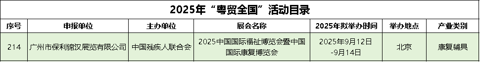 1月23日,廣東省商務(wù)廳正式公布了2025年“粵貿(mào)全國”系列展會的入圍名單,中國國際福祉博覽會暨中國國際康復(fù)博覽會(CR EXPO)憑借其專業(yè)性及影響力,再度入選。