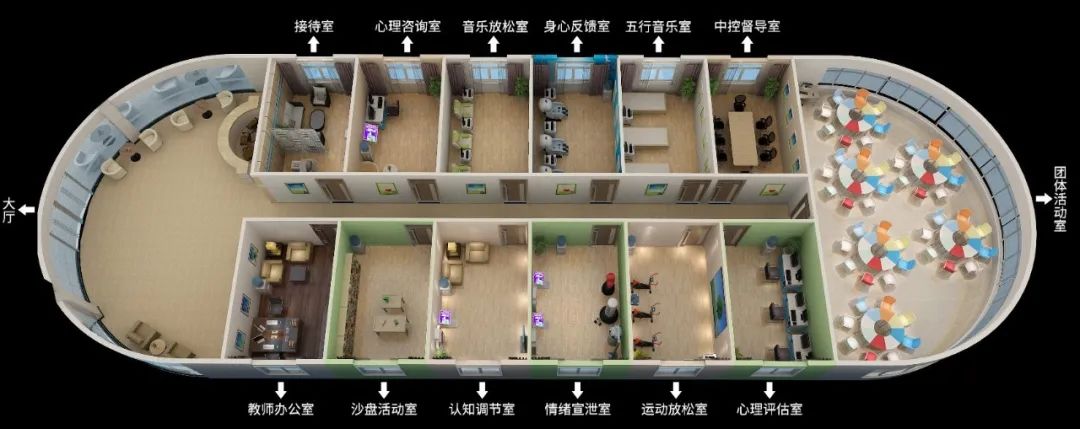 3、通用性。心理咨詢室應(yīng)面向全體學(xué)生,通過普遍開展團(tuán)體輔導(dǎo)活動,使學(xué)生對心理健康有積極認(rèn)識,使心理素質(zhì)逐步得到提高。其建設(shè)應(yīng)通透流暢,適合開展團(tuán)體活動。
