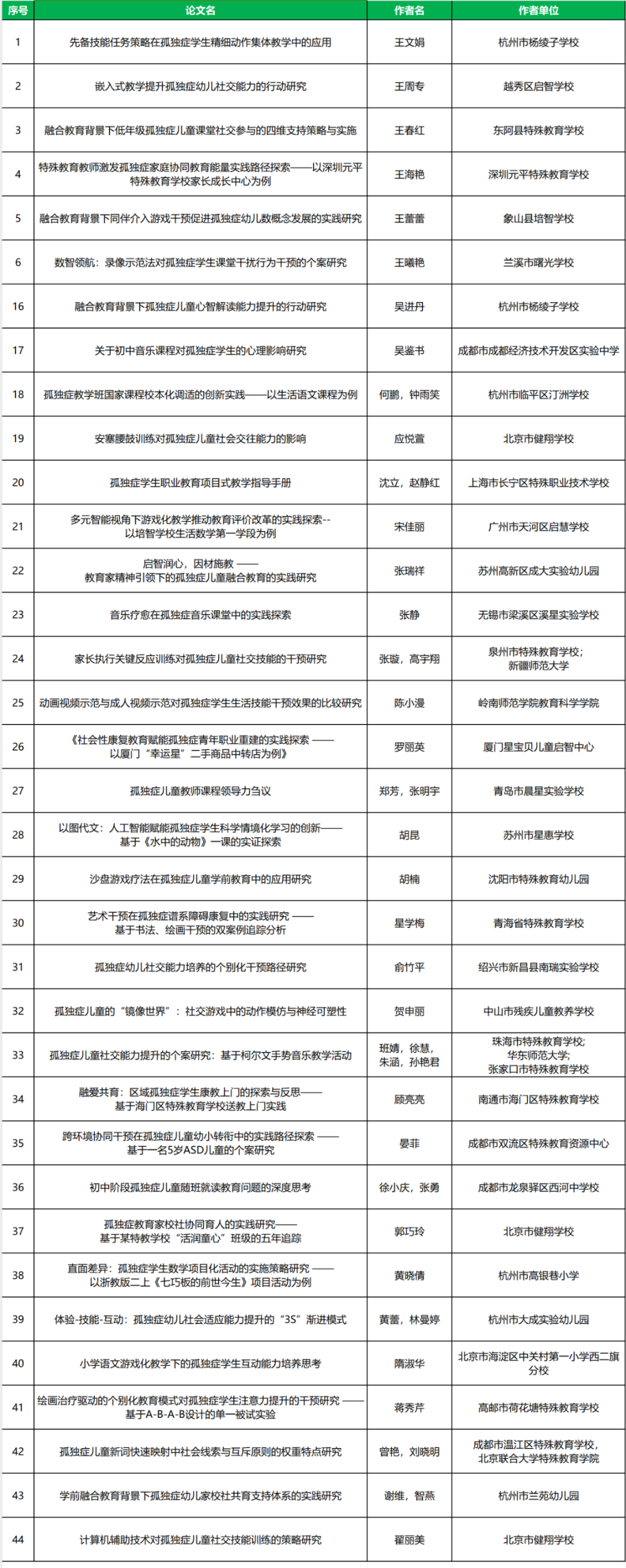 南京特殊教育師范學院特殊教育學院聯(lián)合2025中國國際福祉博覽會暨中國國際康復博覽會(CR EXPO)、中國教育學會特殊教育分會智障教育專委會、殘疾人事業(yè)發(fā)展研究會融合教育專委會、江蘇教育報刊總社現(xiàn)代特殊教育編輯部、北京教育科學研究院北京市特殊教育研究指導中心、北京市海淀區(qū)特殊教育研究與指導中心、杭州市上城區(qū)特殊教育指導中心等聯(lián)合舉辦的“第二屆孤獨癥教育教學論文征集”活動,征集到全國30個省市自治區(qū)738篇論文。經相關專家評審研究決定,共有22篇論文榮獲優(yōu)秀論文,44家篇論文榮獲創(chuàng)新論文,68篇論文為鼓勵論文。公布如下: