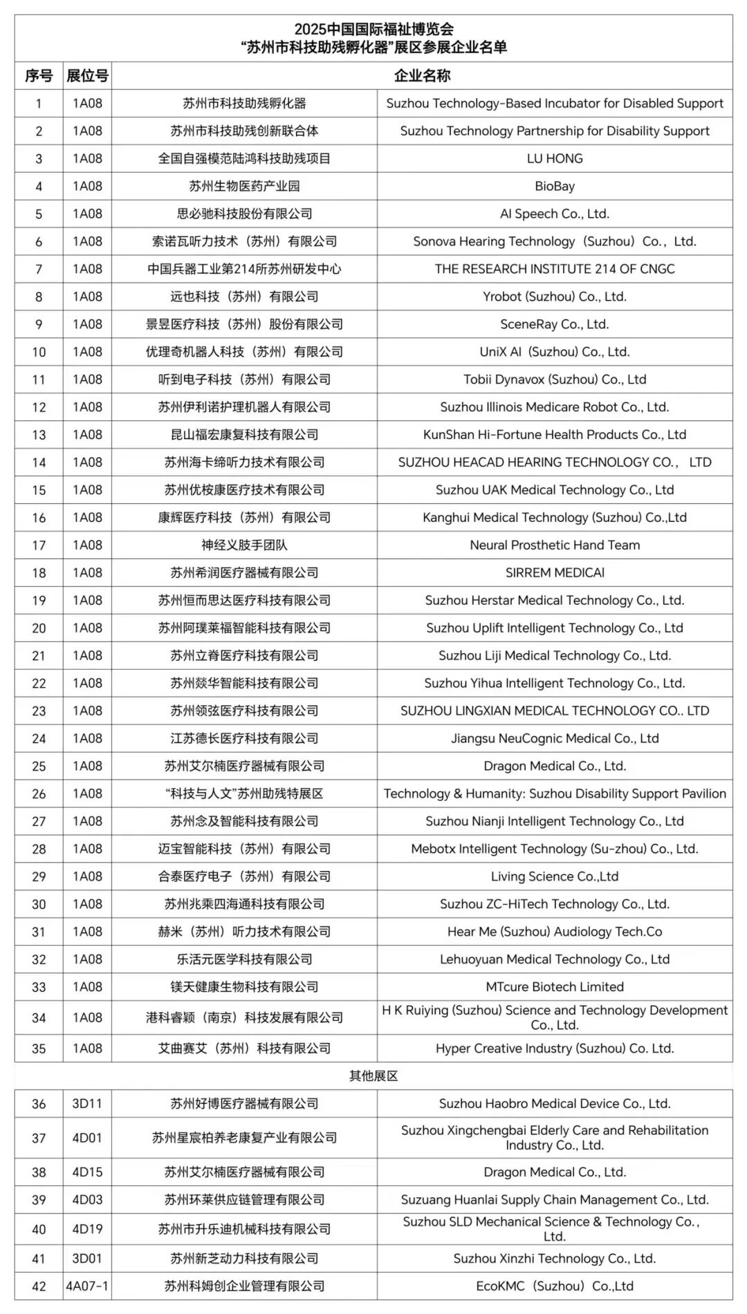 “蘇州市科技助殘孵化器”展區(qū)參展企業(yè)和機(jī)構(gòu)名單