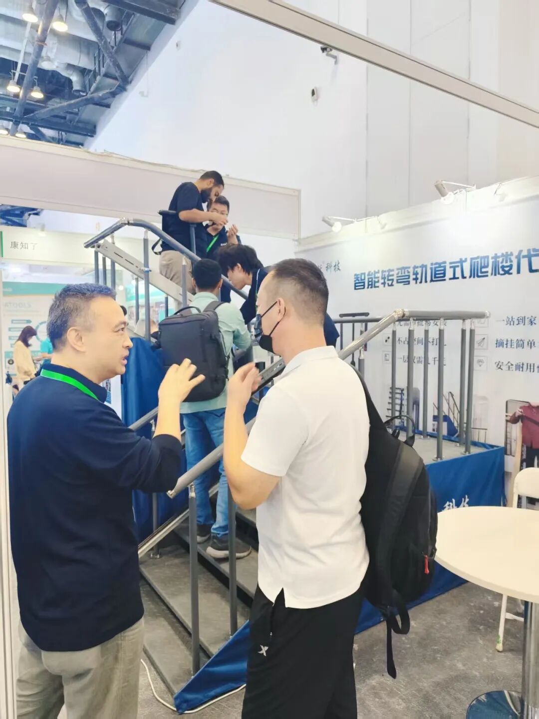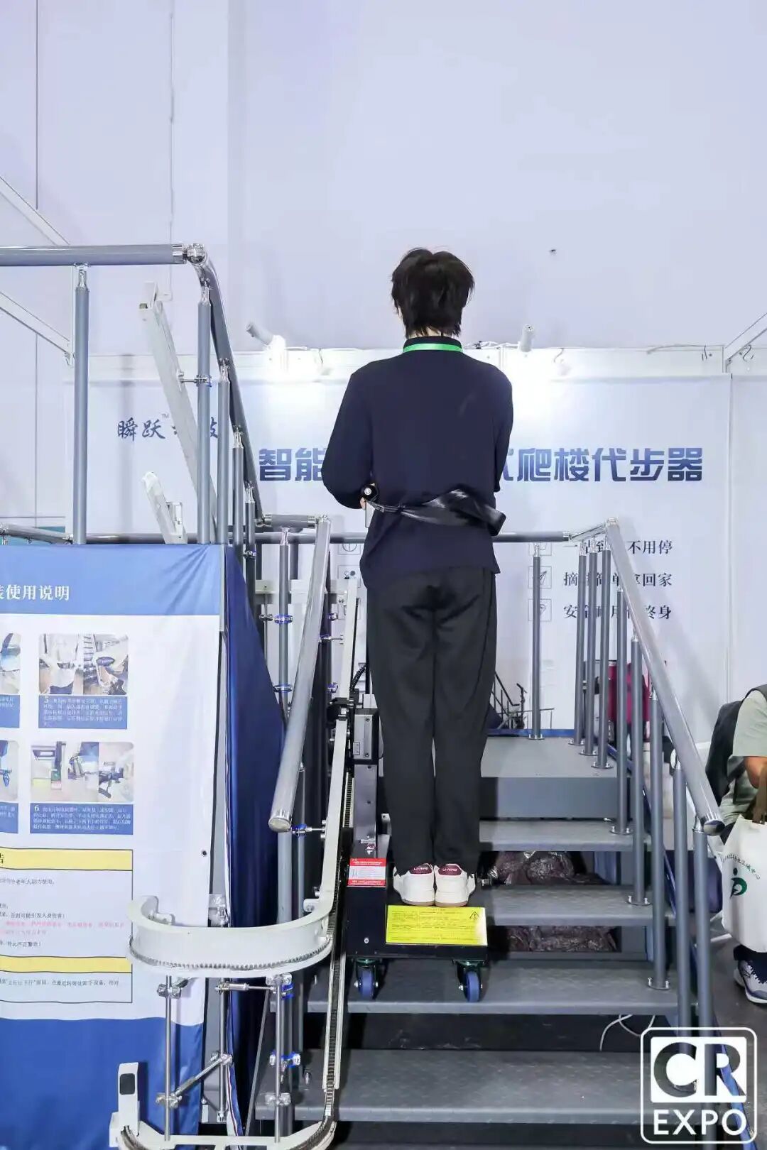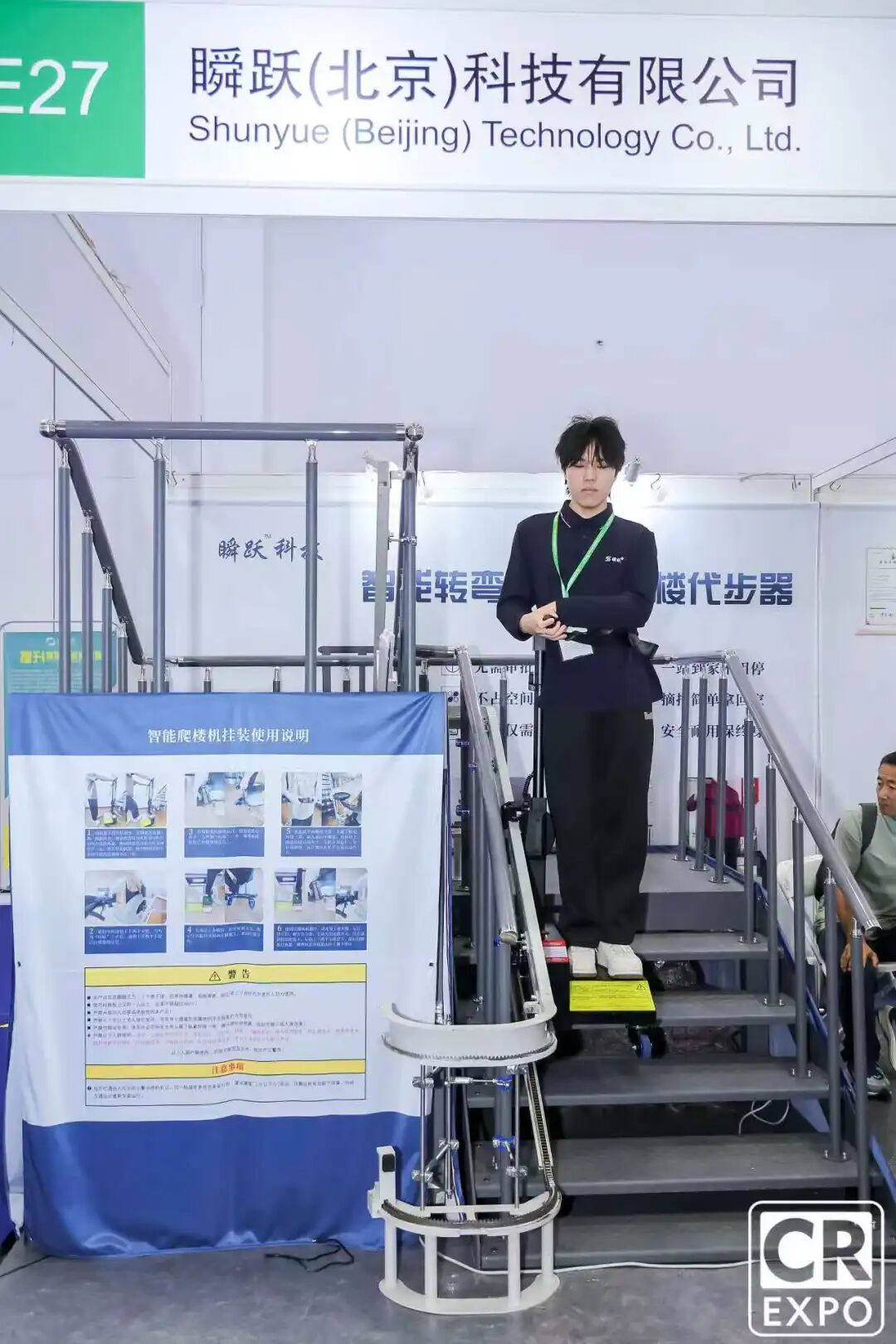 瞬躍(北京)科技有限公司專注于垂直出行創(chuàng)新設(shè)備的研發(fā)與應(yīng)用。本次展出的掛裝式樓道代步器,專為無電梯老舊小區(qū)、自建房、別墅等場景設(shè)計,致力于為行動不便人群提供安全、便捷的上下樓解決方案。該設(shè)備依托扶手安裝軌道運行,具備自動轉(zhuǎn)彎與可拆卸功能,用戶站立即可平穩(wěn)通行,是一款真正體現(xiàn)科技溫度的無障礙出行設(shè)備。