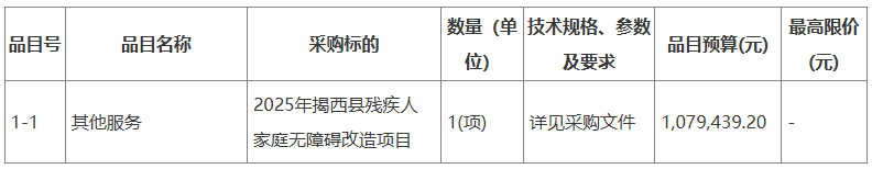 采購(gòu)需求:采購(gòu)包1(2025年揭西縣殘疾人家庭無(wú)障礙改造項(xiàng)目)