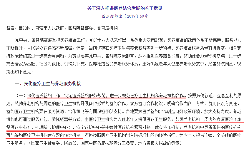 《關(guān)于深入推進醫(yī)養(yǎng)結(jié)合發(fā)展的若干意見》