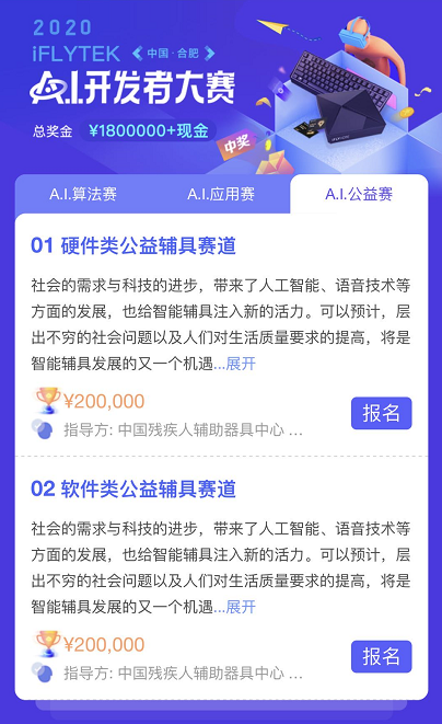 今年,在中國殘疾人輔助器具中心、中國聾人協(xié)會(huì)指導(dǎo),中國國際福祉博覽會(huì)暨中國國際康復(fù)博覽會(huì)組委會(huì)、深圳市信息無障礙研究會(huì)等多家單位聯(lián)合支持下,科大訊飛推出了A.I.公益賽,包含軟件類智能輔具賽題及硬件類智能輔具賽題。