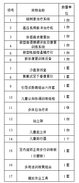 項(xiàng)目名稱:兒??祻?fù)設(shè)備采購