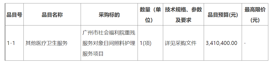 項(xiàng)目名稱:廣州市社會(huì)福利院重殘服務(wù)對(duì)象日間照料護(hù)理服務(wù)項(xiàng)目