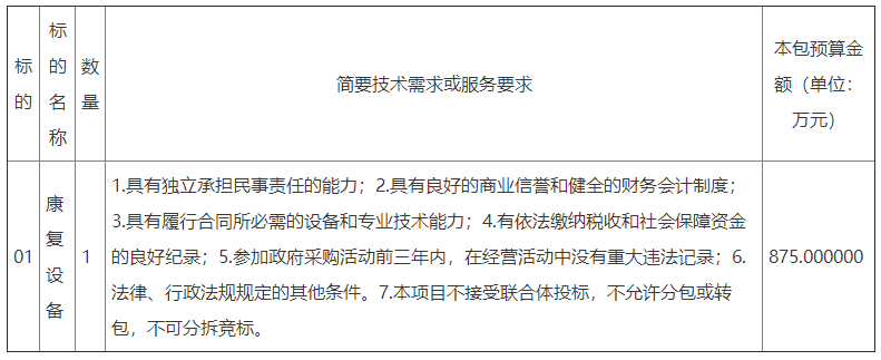 項(xiàng)目名稱:山東菏澤鄆城縣人民醫(yī)院康復(fù)設(shè)備采購項(xiàng)目公開招標(biāo)公告