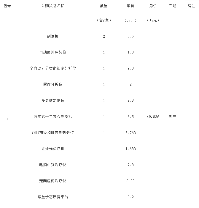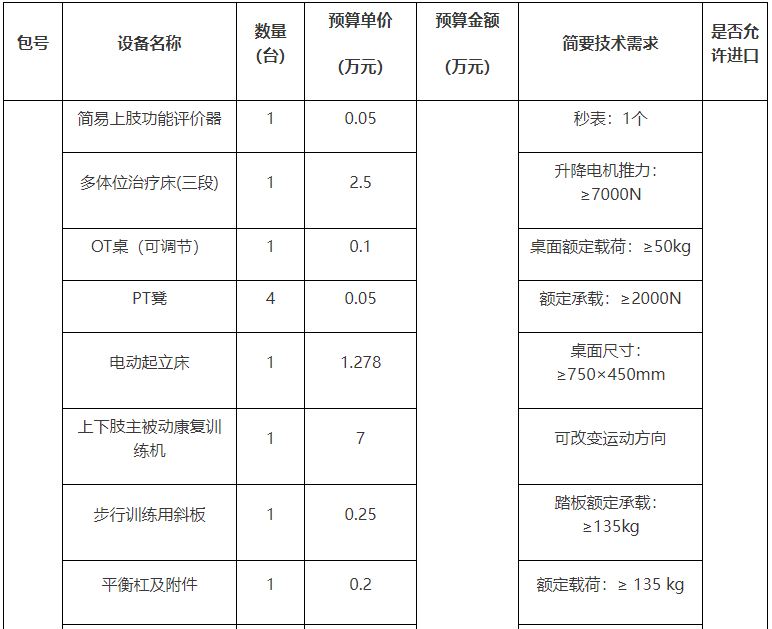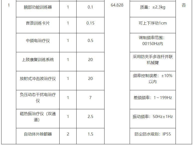 采購需求:基層康復(fù)站康復(fù)設(shè)備采購(具體內(nèi)容詳見第四章項(xiàng)目說明和采購需求)