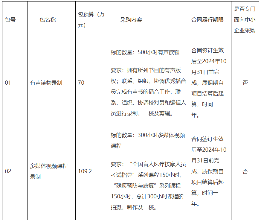 中國盲文出版社多媒體盲人讀物出版項目競爭性磋商