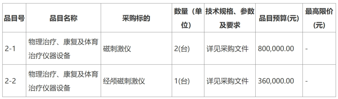 采購包2(磁刺激儀等醫(yī)療設(shè)備):