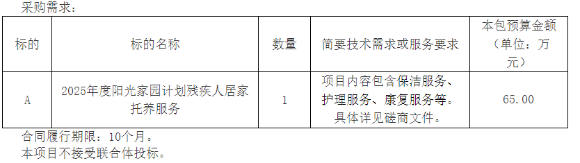 2025年度陽光花園計劃殘疾人居家托養(yǎng)服務競爭性磋商公告