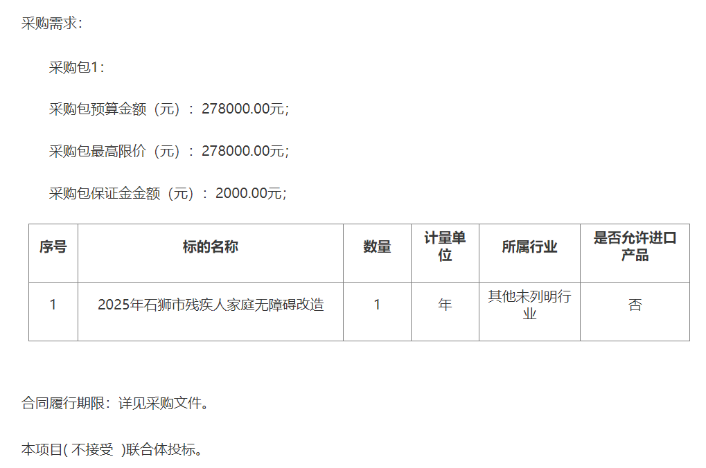 石獅市殘疾人聯(lián)合會2025年石獅市殘疾人家庭無障礙改造競爭性磋商采購公告