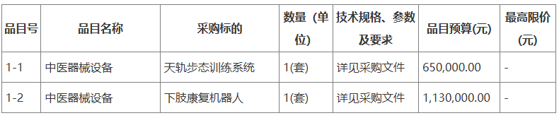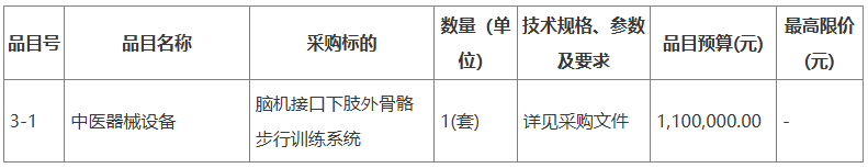廣州醫(yī)科大學(xué)附屬中醫(yī)醫(yī)院天軌步態(tài)訓(xùn)練系統(tǒng)、下肢康復(fù)機(jī)器人、認(rèn)知語(yǔ)言康復(fù)訓(xùn)練平臺(tái)、腦機(jī)接口下肢外骨骼步行訓(xùn)練系統(tǒng)采購(gòu)項(xiàng)目公開(kāi)招標(biāo)公告