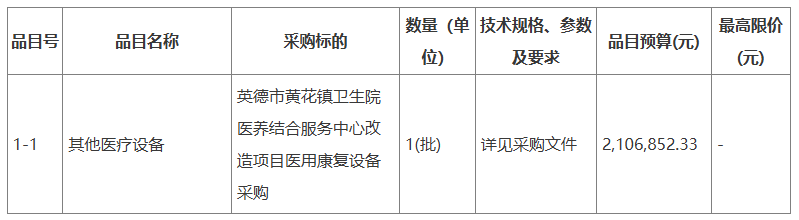 英德市黃花鎮(zhèn)衛(wèi)生院醫(yī)養(yǎng)結(jié)合服務(wù)中心改造項(xiàng)目醫(yī)用康復(fù)設(shè)備采購(gòu)招標(biāo)公告