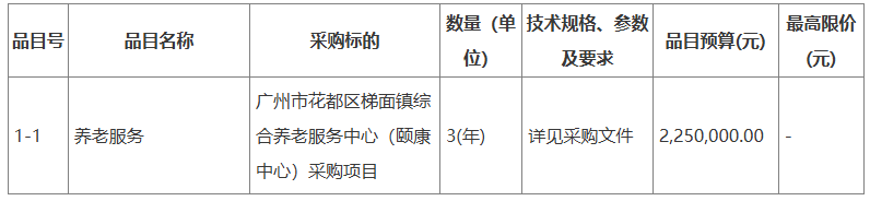 廣州市花都區(qū)梯面鎮(zhèn)綜合養(yǎng)老服務(wù)中心(頤康中心)采購項目招標(biāo)公告