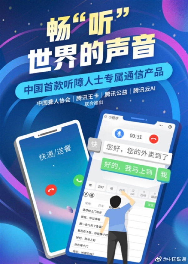 日前,中國聯(lián)通攜手騰訊和中國聾人協(xié)會聯(lián)合推出了“暢聽王卡”,針對聽障人士的手機通信困難,提供“無障礙AI通話服務”。