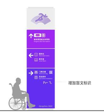 近期,杭州亞運(yùn)會(huì)、亞殘運(yùn)會(huì)發(fā)布了引導(dǎo)標(biāo)識(shí)系統(tǒng)基礎(chǔ)元素設(shè)計(jì),增加了可觸摸的盲文標(biāo)識(shí),便于視覺障礙者使用。