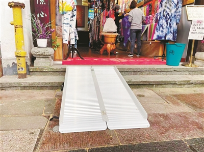 ▲清河坊某商鋪門口,鋪上了無障礙臨時(shí)坡道