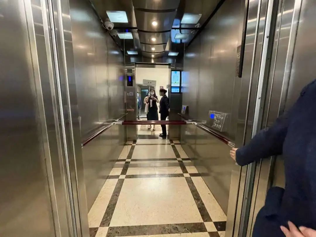 這是一臺(tái)無障礙電梯,扶手及按鈕的高度恰到好處,門的寬度讓輪椅人士也能輕松通行。