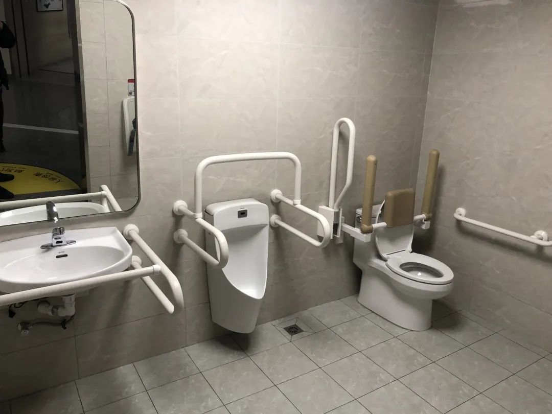 無障礙衛(wèi)生間里,扶手及緊急呼叫裝置一應(yīng)俱全,為行動(dòng)不便人士提供了安全順暢的如廁空間。