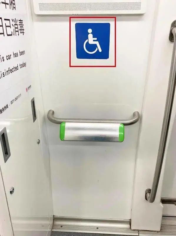 殘疾人專用靠扶位:為保障輪椅人士的乘車安全,每節(jié)列車車廂均設(shè)有專用靠扶位,并在對(duì)應(yīng)的屏蔽門設(shè)置無障礙標(biāo)識(shí)。