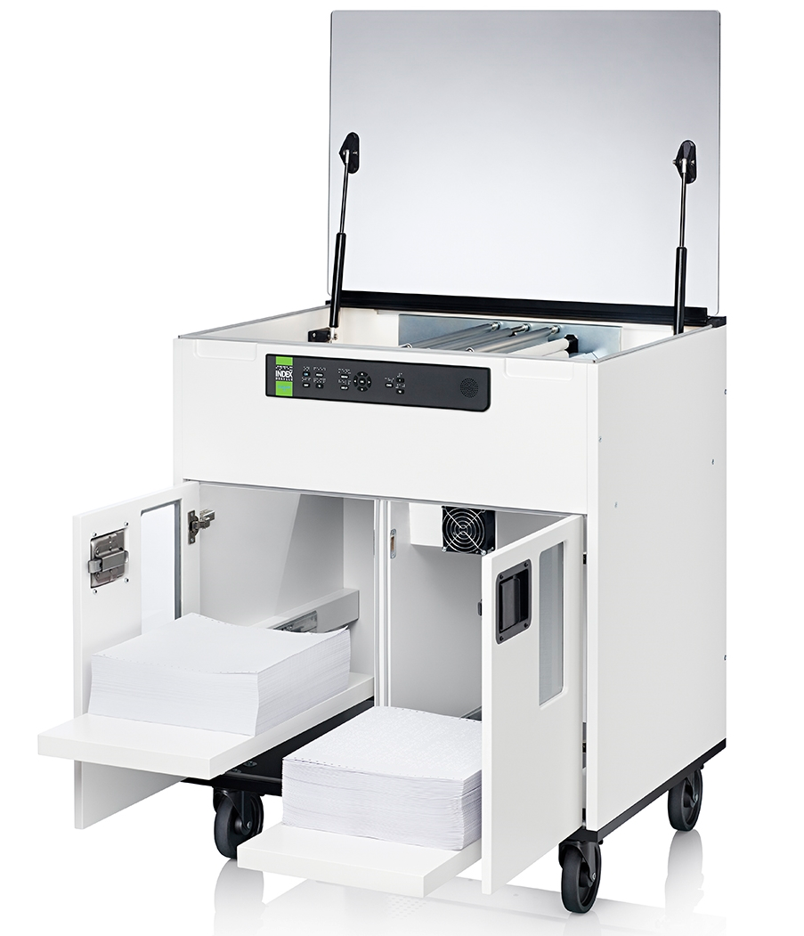 連續(xù)進(jìn)紙高速盲文刻印機(jī) FanFold-D V5由嘉德永道和瑞典Index公司聯(lián)合研發(fā)制造。平滑的紙張?zhí)幚?、全天候點(diǎn)字印刷、緊湊和整體隔音的設(shè)計(jì),使它成為目前暢銷的主流盲文刻印機(jī)。