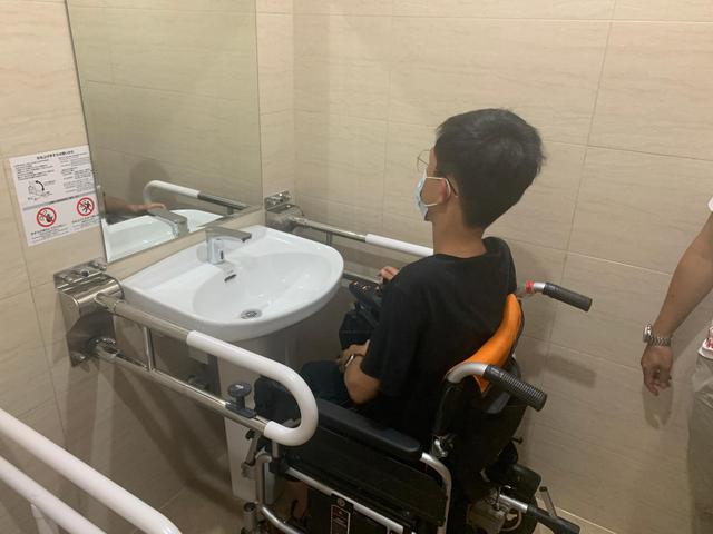 作為首位親身試用者,小方也在一些細(xì)節(jié)方面向紀(jì)念館提出建議:“如果要提建議的話,我覺(jué)得無(wú)障礙洗手間的門建議改成推拉門,這樣坐著輪椅開門關(guān)門會(huì)更方便些。”