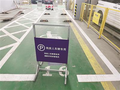 昨天,記者去蓮花港河地下停車場現(xiàn)場走訪,發(fā)現(xiàn)這里共有885個(gè)公共泊位,其中有18個(gè)是“無障礙專用車位”。車庫的各個(gè)通道路口,還有墻壁上,都有“無障礙”指示牌。目前,這些專用車位都用藍(lán)色的牌子攔起來了,工作人員告訴記者,它們都是專人專用,登記過的殘疾人司機(jī)開車進(jìn)來,工作人員就會(huì)把車子引導(dǎo)到車位上。