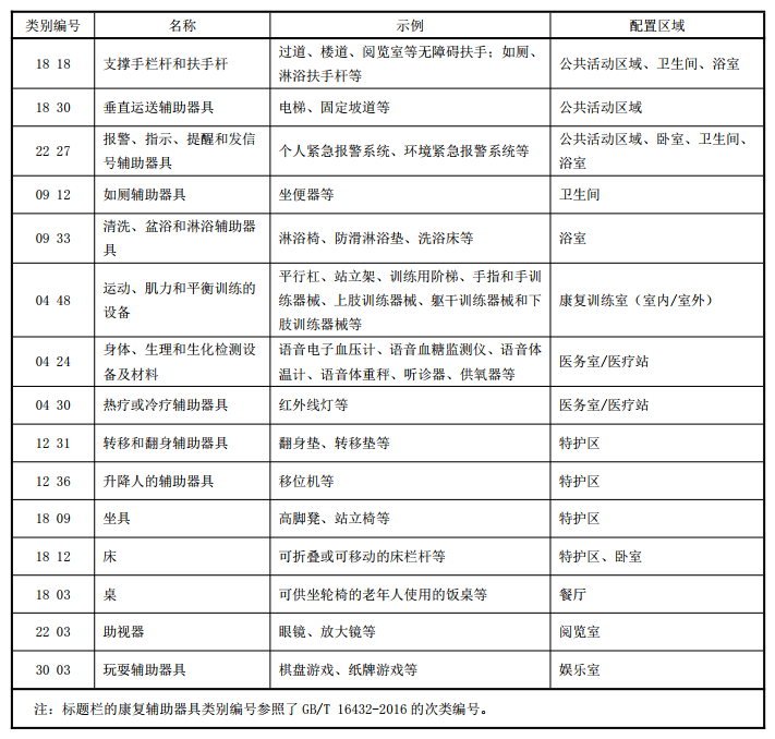 養(yǎng)老機(jī)構(gòu)公共區(qū)域的康復(fù)輔助器具基本配置清單↓