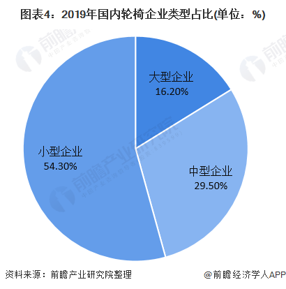 從企業(yè)類型角度看,我國國內輪椅行業(yè)以小型企業(yè)為主,大型醫(yī)療器械企業(yè)輪椅業(yè)務占比較小,多為附帶業(yè)務,從輪椅企業(yè)來看,截止2019年,我國輪椅行業(yè)大型企業(yè)占比16.2%,中型企業(yè)占比29.5%,小型企業(yè)占比54.3%。