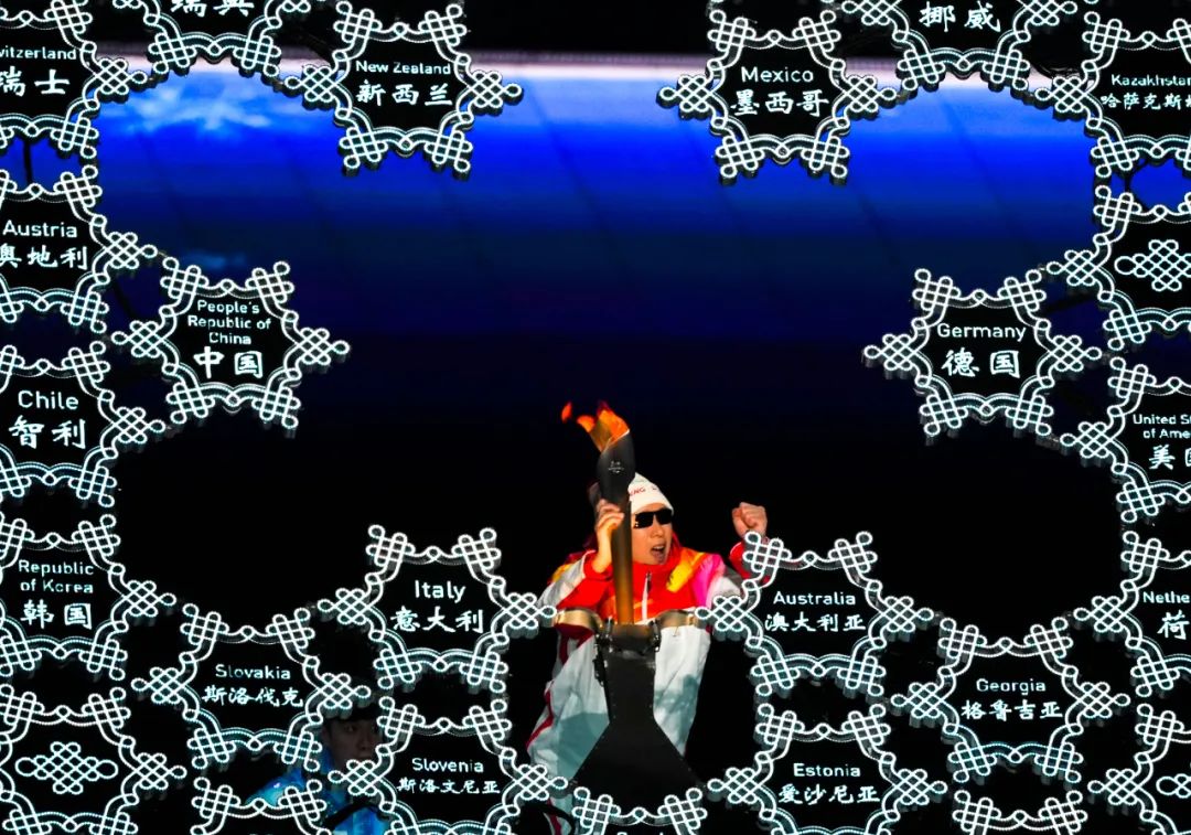 還是那片雪花,還是那團(tuán)微火。火炬?zhèn)鬟f到最后一棒,退役盲人運(yùn)動(dòng)員李端拿起了主火炬。李端曾是CBA主力運(yùn)動(dòng)員,殘奧會(huì)三級(jí)跳遠(yuǎn)項(xiàng)目四塊金牌得主。在歷屆殘奧會(huì)和冬殘奧會(huì)開(kāi)幕式中,還沒(méi)有盲人點(diǎn)火的先例。當(dāng)盲人第一次成為殘奧會(huì)歷史上最后一棒火炬手,用雙手觸摸火炬臺(tái)的方式點(diǎn)燃圣火,如體育點(diǎn)亮人生的暗夜,如拼搏點(diǎn)燃生命的燭火。