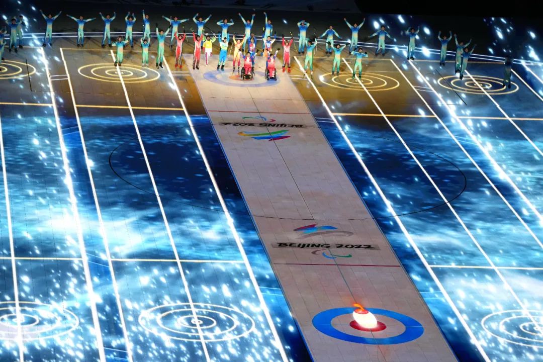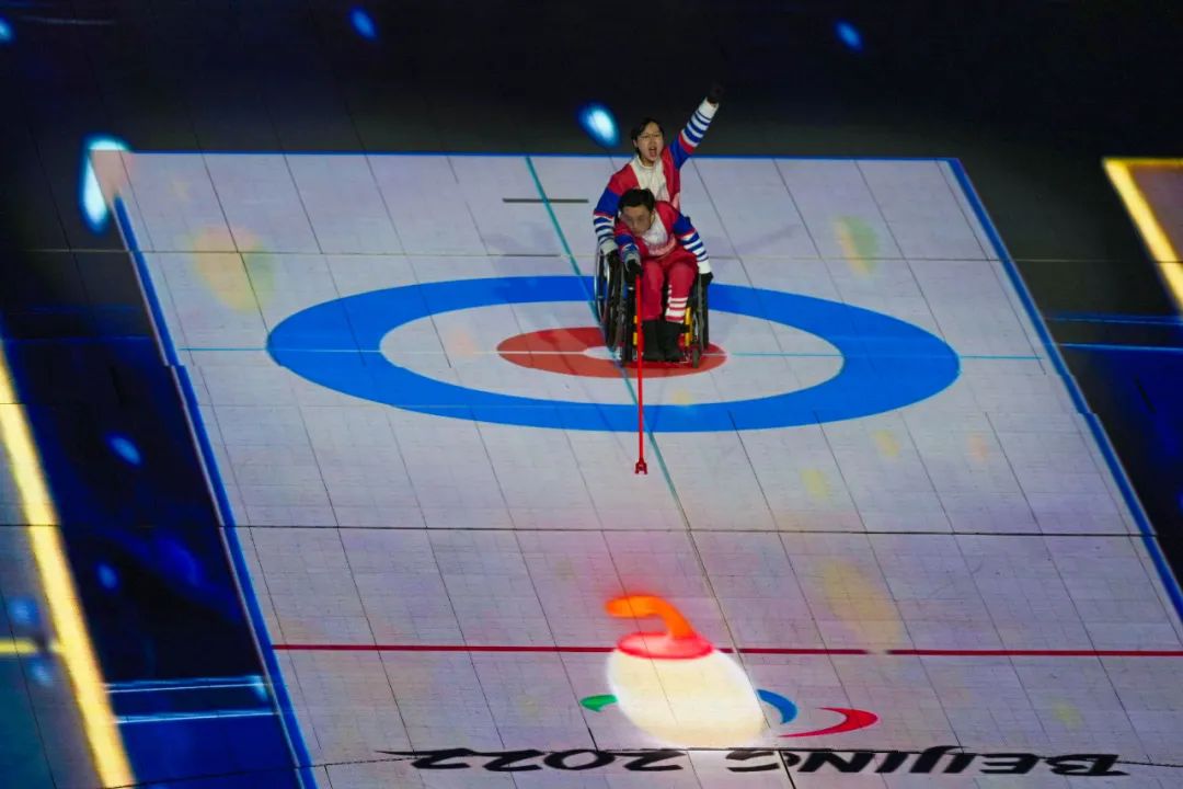 隨著冰壺的擊出,標(biāo)線(xiàn)一格格推進(jìn),從10至1的倒計(jì)時(shí)數(shù)字在場(chǎng)中心賽道上顯現(xiàn)。當(dāng)時(shí)間歸零,冰壺穩(wěn)穩(wěn)進(jìn)入圓心。在全場(chǎng)的歡呼聲中,一屆無(wú)與倫比的冬殘奧會(huì)拉開(kāi)大幕。