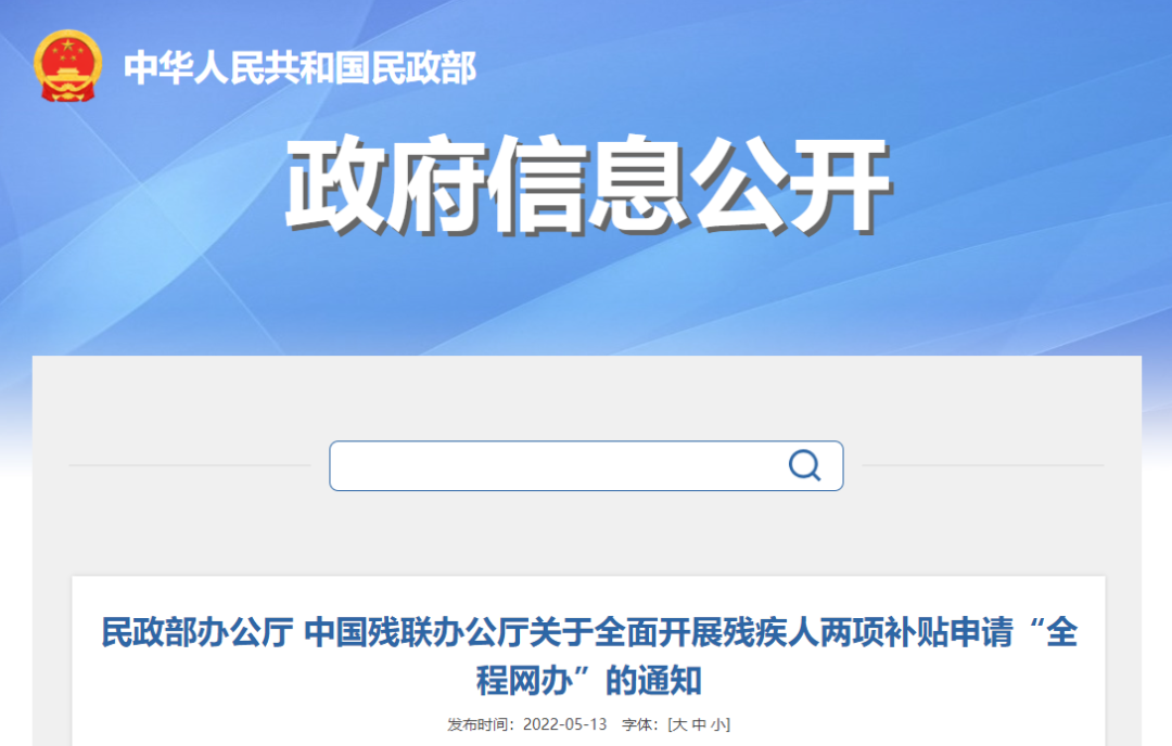 民政部辦公廳 中國(guó)殘聯(lián)辦公廳關(guān)于全面開(kāi)展殘疾人兩項(xiàng)補(bǔ)貼申請(qǐng)“全程網(wǎng)辦”的通知