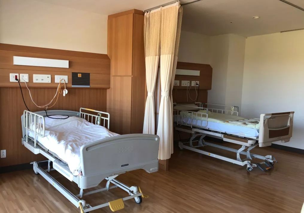 四人間的病房,沒有花俏多余的裝飾。地面為木紋地膠,天花為吸引礦棉板。板與板之間的縫隙,不留心觀察的話幾乎看不見: