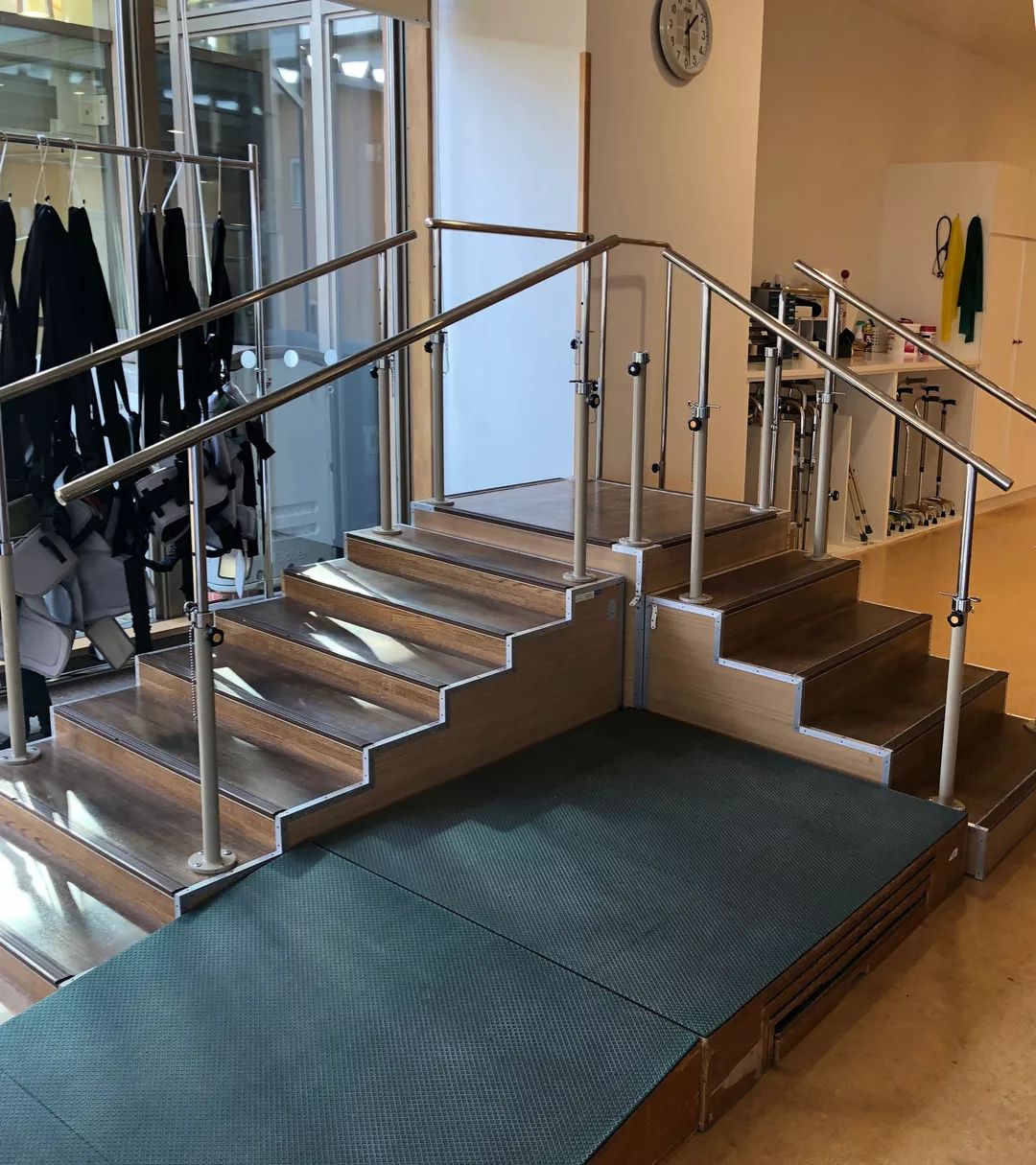訓(xùn)練上下臺階的設(shè)備,每邊的梯階高度都不同,還設(shè)有斜坡: