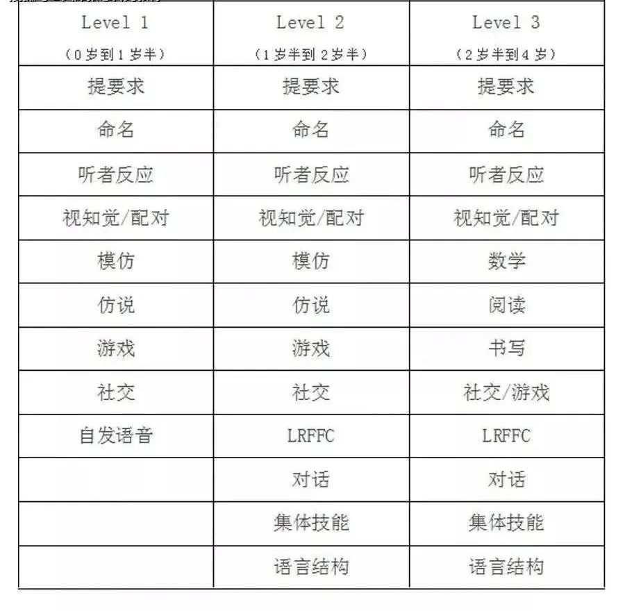 E:早期密集階段:主要提升孩子的基本學(xué)習(xí)技能(learning-to-learn),包括基礎(chǔ)的說者技能和聽者技能、模仿能力、視覺分析技能等;