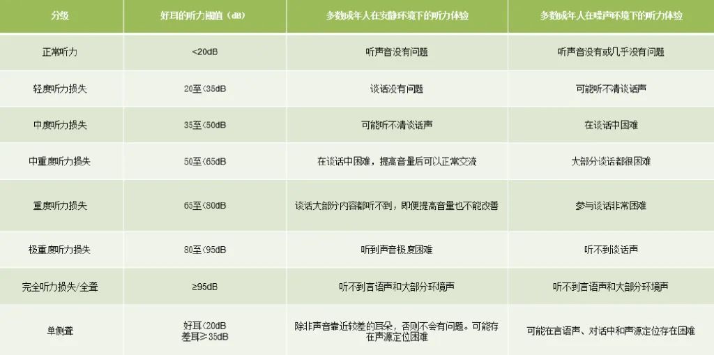 WHO2021年發(fā)布聽力損失分級(jí)表標(biāo)準(zhǔn)
