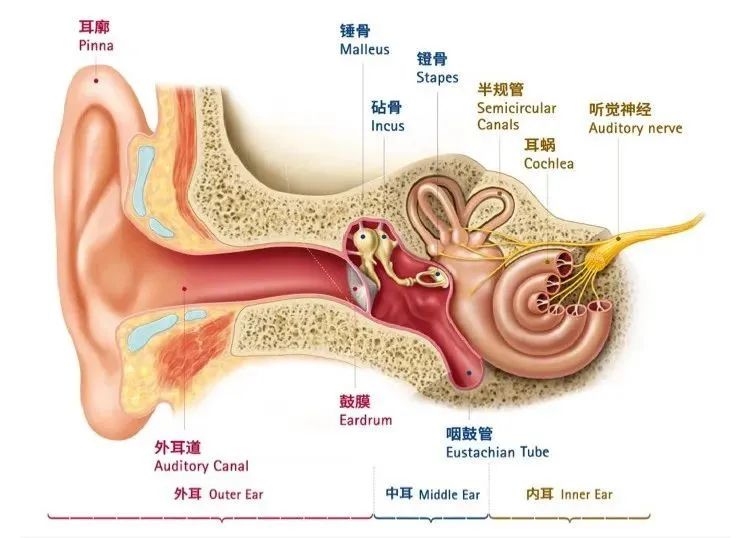 耳蝸:內(nèi)耳的一部分,包含毛細(xì)胞和神經(jīng)末梢。它們將聲音從中耳的振動(dòng)轉(zhuǎn)換為電能,然后進(jìn)入大腦進(jìn)行處理。