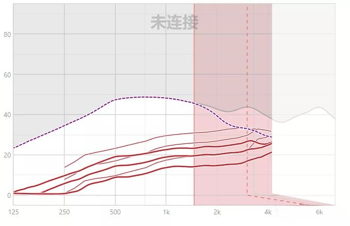 功率:助聽設(shè)備的最大補(bǔ)償能力,若該助聽器功率為90dB,則適用人群的聽力應(yīng)小于90dB。如下圖陰影范圍為該助聽器的功率。