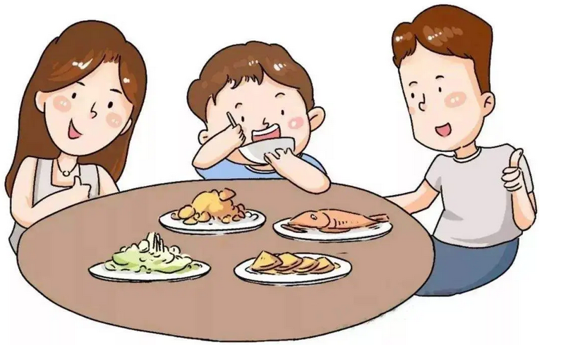 (3)進(jìn)餐時(shí),不要先將飯菜盛在每個(gè)人的盤(pán)子里或碗里,而要他們輪流取自己愛(ài)吃的飯菜。讓孩子等到輪到他時(shí),自己去領(lǐng)取。