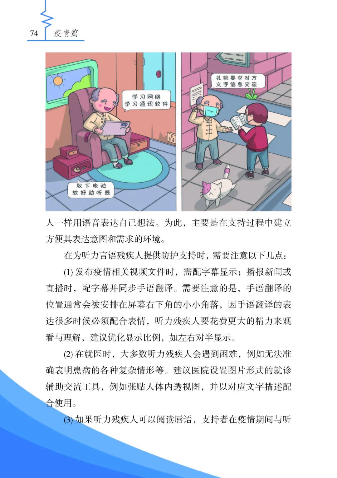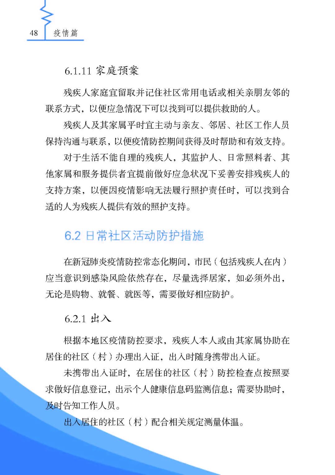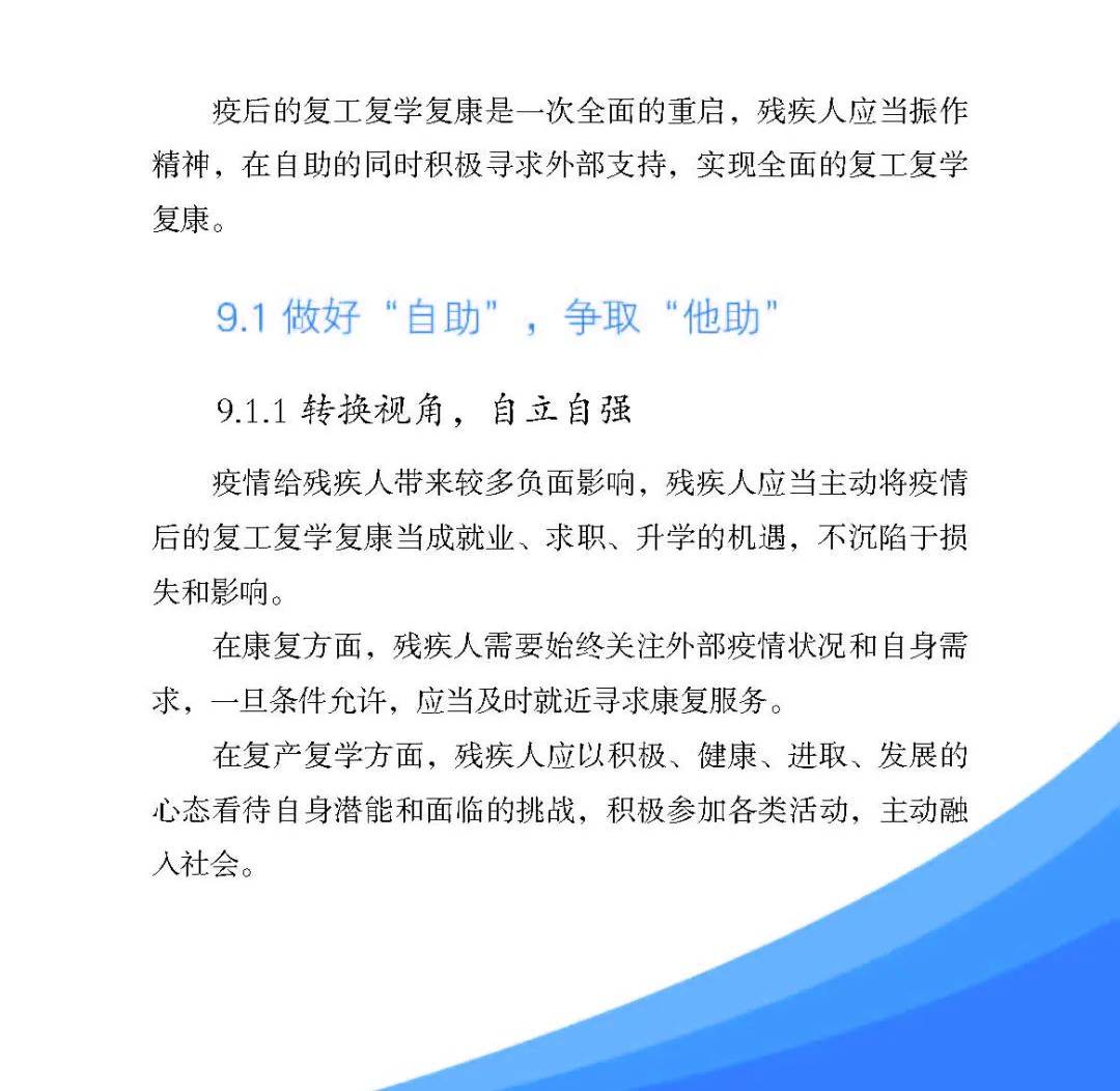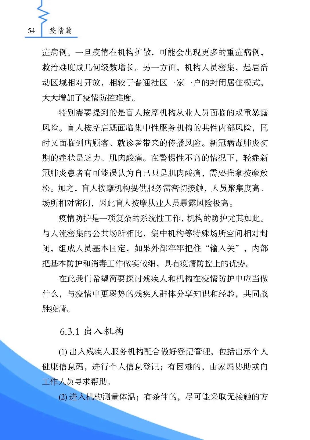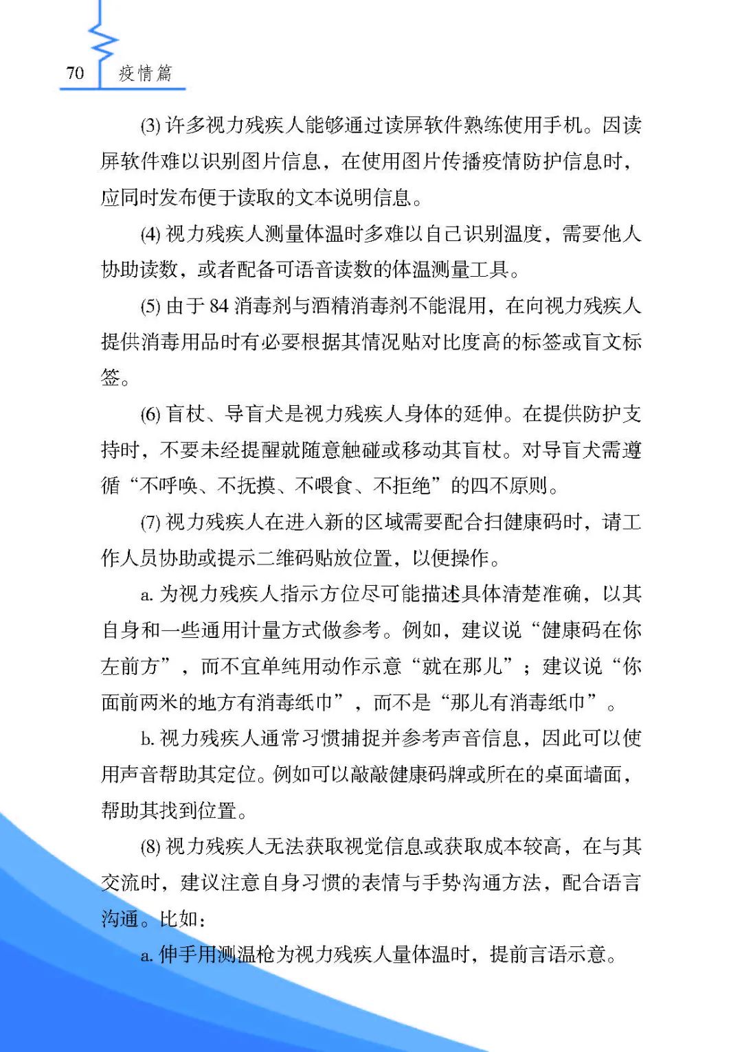 疫情給殘疾人帶來(lái)了身心健康、照護(hù)、經(jīng)濟(jì)等多方面的挑戰(zhàn),日常生活中,殘疾人應(yīng)如何做好防護(hù)呢?為做好殘疾人群體疫情防控工作,幫助殘疾人朋友科學(xué)防疫,當(dāng)好自己健康的第一責(zé)任人,中國(guó)殘疾人聯(lián)合會(huì)組織編寫了《殘疾人安全防護(hù)實(shí)用手冊(cè)·疫情篇》。