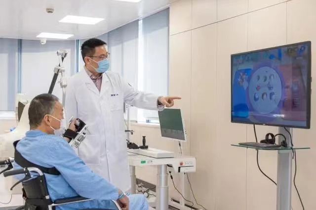 腦外傷病人穿戴上外骨骼機(jī)器人進(jìn)行步行訓(xùn)練,骨傷患者通過模擬場景進(jìn)行吃飯、穿衣、刷牙等精細(xì)動作的康復(fù)訓(xùn)練。這些充滿科技感和未來感的畫面是位于杭州市蕭山區(qū)浙江大學(xué)醫(yī)學(xué)院附屬第二醫(yī)院(簡稱“浙醫(yī)二院”)博奧院區(qū)康復(fù)中心最新的智能康復(fù)場景。