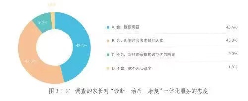 費(fèi)心、費(fèi)力、費(fèi)錢,是發(fā)展障礙家庭的真實現(xiàn)狀,行業(yè)急需多學(xué)科協(xié)作,提升家庭的生活質(zhì)量。《藍(lán)皮書》數(shù)據(jù)顯示,89.2%的家長表示需要“診斷-治療-康復(fù)”一體化的康復(fù)服務(wù)。