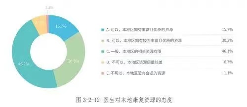 在漫漫康復(fù)路上,康復(fù)機(jī)構(gòu)往往承擔(dān)著重要的專業(yè)角色,但從專業(yè)醫(yī)生的角度出發(fā),康復(fù)服務(wù)的整體水平似乎不盡人意?!端{(lán)皮書》顯示,46.1%的醫(yī)生認(rèn)為當(dāng)?shù)氐南嚓P(guān)資源一般,占比最多。還有7.8%的醫(yī)生認(rèn)為,當(dāng)?shù)乜祻?fù)資源較差,甚至是沒有相關(guān)的資源,完全不可以滿足孩子的康復(fù)需求。