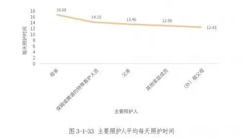 特殊家庭要付出的成本遠(yuǎn)不止金錢。數(shù)據(jù)顯示,當(dāng)母親作為主要照護(hù)人時,平均每天照護(hù)16.68小時,當(dāng)保姆作為主要照護(hù)人時,平均每天照護(hù)14.15小時,當(dāng)父親作為主要照護(hù)人時,平均每天照護(hù)13.46小時,而當(dāng)其他家庭成員和(外)祖父母作為主要照護(hù)人時,平均每天照護(hù)時間分別為12.96小時和12.43小時。可見,母親作為主要照護(hù)人時,每天付出的時間是最長的。