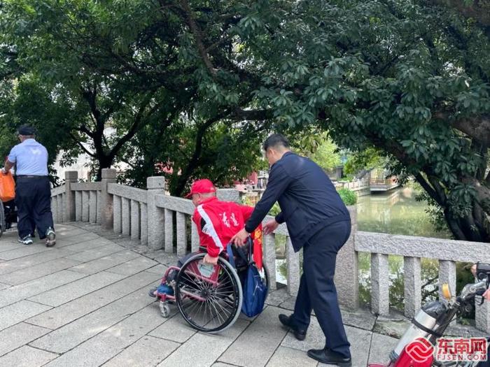 上下杭歷史文化街區(qū)是福州的一張重要文化名片?;顒又校w驗者們沿著三捷河南側依次參觀風景區(qū),并體驗景區(qū)中的無障礙設施。