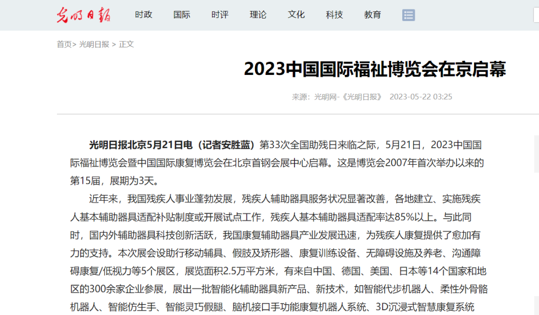 第33次全國助殘日來臨之際,5月21日,2023中國國際福祉博覽會暨中國國際康復博覽會在北京首鋼會展中心啟幕。這是博覽會2007年首次舉辦以來的第15屆,展期為3天。